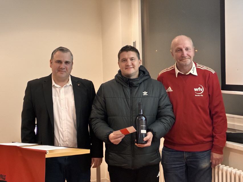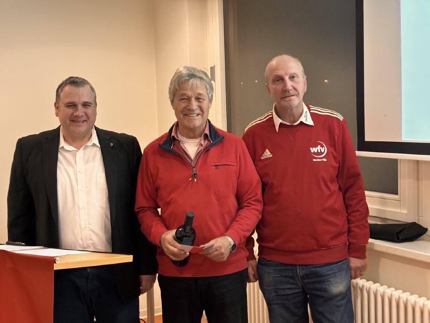 Ralf Lalka wurde für beeindruckende 2.500 geleitete Spiele geehrt, während Hans Fischer für seine 45-jährige Tätigkeit als Schiedsrichter ausgezeichnet wurde – ein herausragendes Beispiel für Beständigkeit, Leidenschaft und Loyalität zum Ehrenamt.